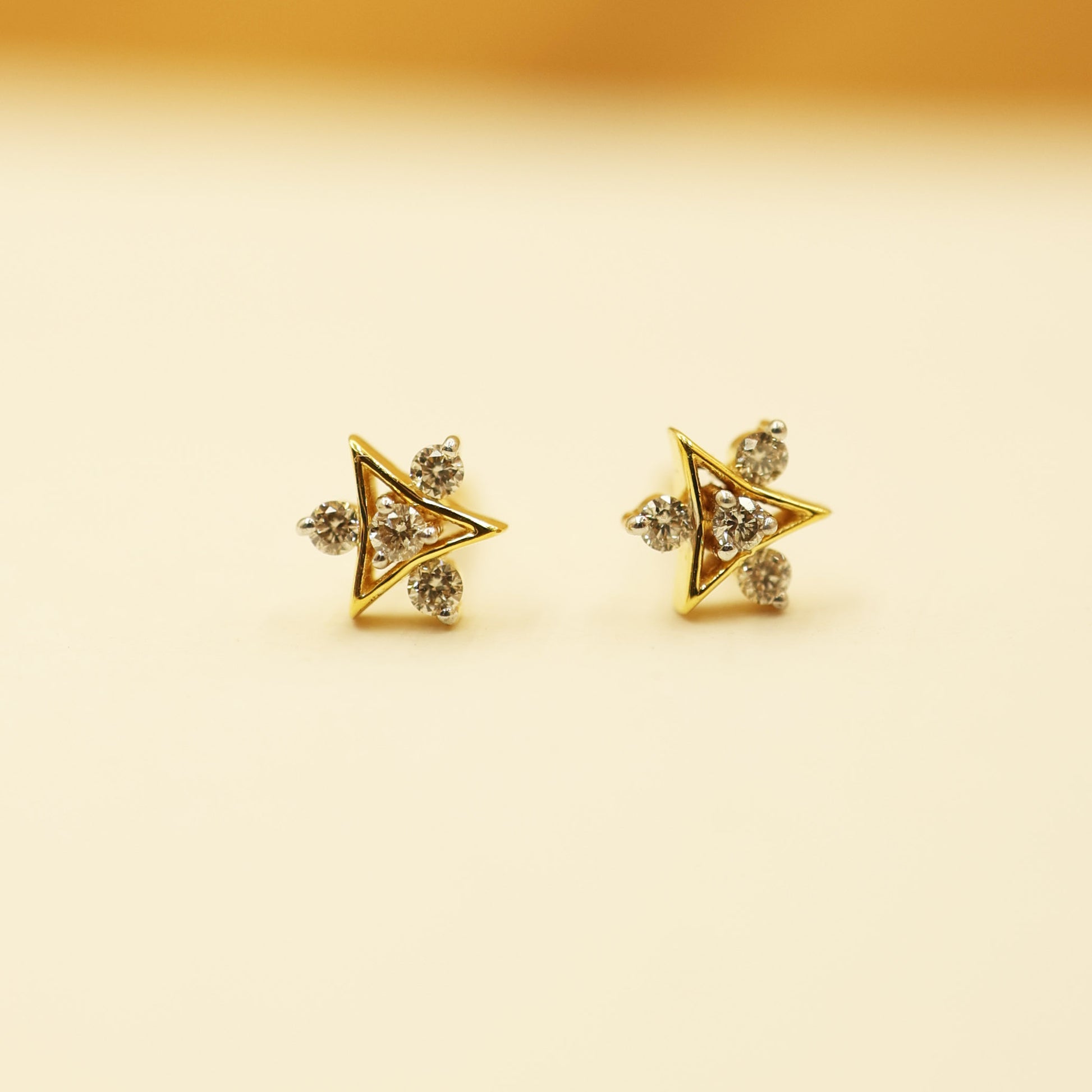 The Divienne's Astra Spark Diamond Earrings radiate a modern celestial charm with a geometric twist. Crafted in 10k gold, these lightweight earrings feature 8 round brilliant natural diamonds, collectively weighing 0.11 carats. The triangular gold frame is accented by perfectly placed diamonds that capture light from every angle. With I-J color grading and SI clarity, they shimmer with understated brilliance. Designed to blend contemporary flair with timeless elegance, these earrings are perfect for both elevated everyday looks and stylish evening ensembles.